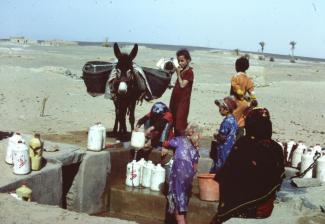 Merzouga, das Dorf am Rand der Sanddünen des Erg Chebbi, in dem nun Hunderte von Hotels stehen und auch das Internet nicht mehr wegzudenken ist, hatte damals einen einzigen Brunnen, an dem die Frauen mit Eseln Wasser holten. Als wir uns dem Brunnen näherten, um auch Wasser zu holen, nahmen die Frauen Reißaus, denn es ziemte sich nicht in Anwesenheit junger, fremder Männer weiterhin dem Tagwerk nachzugehen. Man könnte sich vielleicht von den Fremden den „bösen Blick“ einfangen – ein weit verbreiteter Aberglaube.
