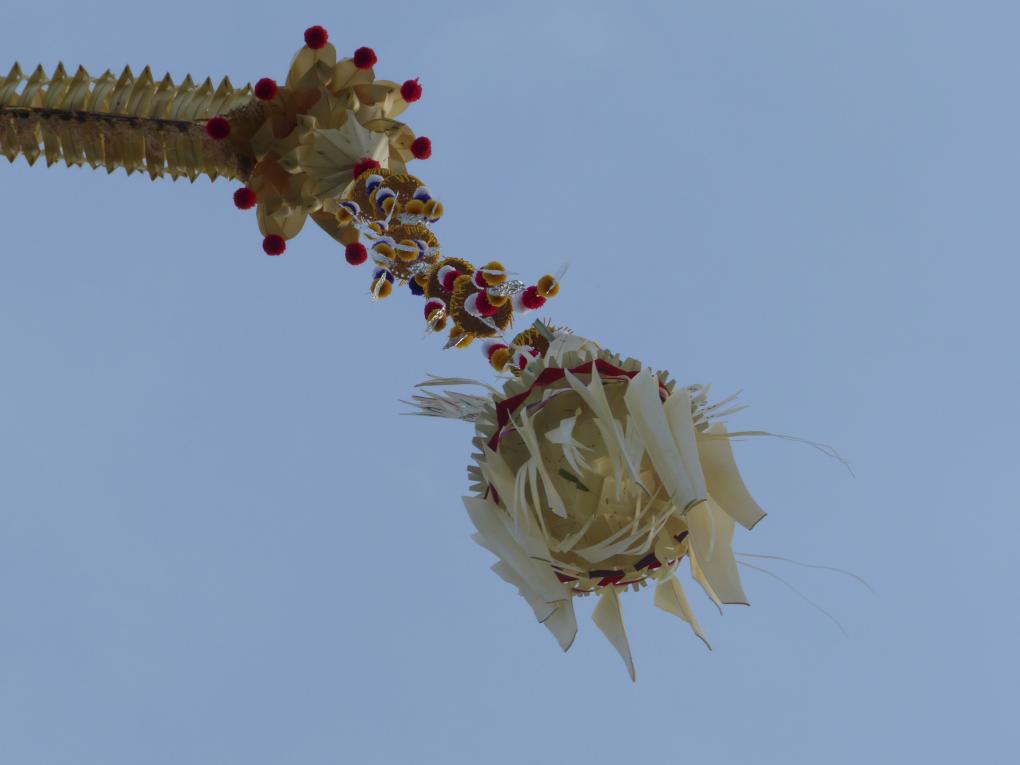 Das Fest beginnt mit dem Hari Galungan Manis Tag und endet 10 Tage später mit Hari Kuningan Manis. Während dieser Zeit besuchen sich Familien (ist ein bisschen so wie bei uns Weihnachten), es finden Vorführungen statt, es wir gebacken, gekocht, geflochten, gequatscht, Kaffee getrunken, gegessen, gebetet und natürlich im Tempel geopfert.