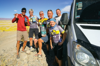Mutlos, kraftlos hocken wir im Dreck und warten auf nichts. Irgendwann braust ein Bus um die Kurve, hält an, spuckt gut gelaunte Touristen aus. Alles Engel, denn jeder von ihnen hält eine andere Gabe in der Hand. Der erste eine Gallone Wasser, die zweite Cola, die dritte Chips und der vierte eisgekühltes Bier – Halleluja! Dazu feuern sie uns an, mit Lob und Bewunderung, wir dürften nicht verzagen. Noch mehr Cola, noch mehr Chips. Als sie weiterfahren, sind Wille und Mut wieder zurück. Die geplante Runde ziehen wir durch.