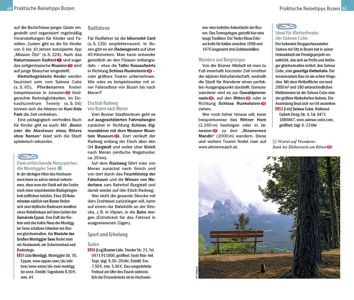 Dieser aktuelle Stadtführer ist der ideale Begleiter, um alle Seiten der beiden größten Städte Südtirols selbstständig zu entdecken: