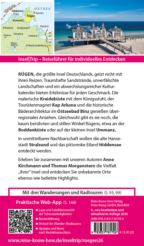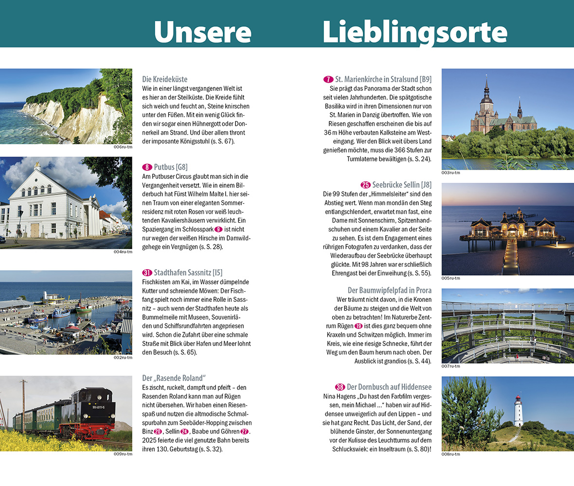 Rügen, die größte Insel Deutschlands, geizt nicht mit ihren Reizen. Traumhafte Sandstrände, unverfälschte Landschaften und ein abwechslungsreicher Kulturkalender bieten Erlebnisse für jeden Geschmack. Die malerische Kreideküste mit dem Königsstuhl, der Touristenmagnet Kap Arkona und die historische Bäderarchitektur im Ostseebad Binz genießen überregionales Ansehen. Gleichwohl gibt es sie noch, die kaum berührten und stillen Winkel Rügens, etwa an der Boddenküste oder auf der kleinen Insel Ummanz. In unmittelbarer Nachbarschaft wollen die alte Hansestadt Stralsund und das pittoreske Eiland Hiddensee entdeckt werden.