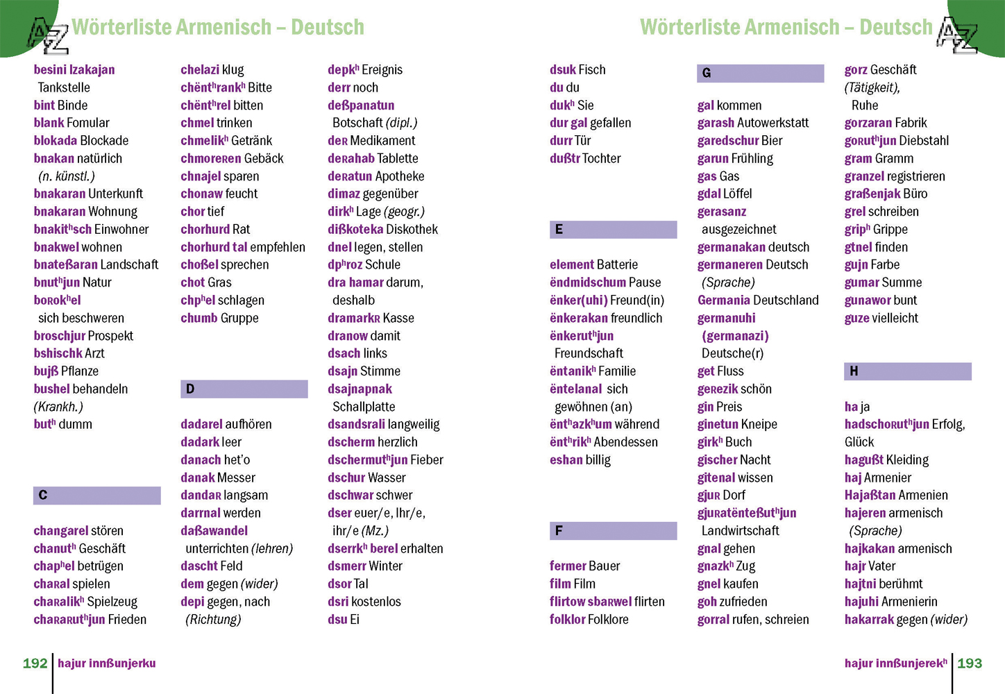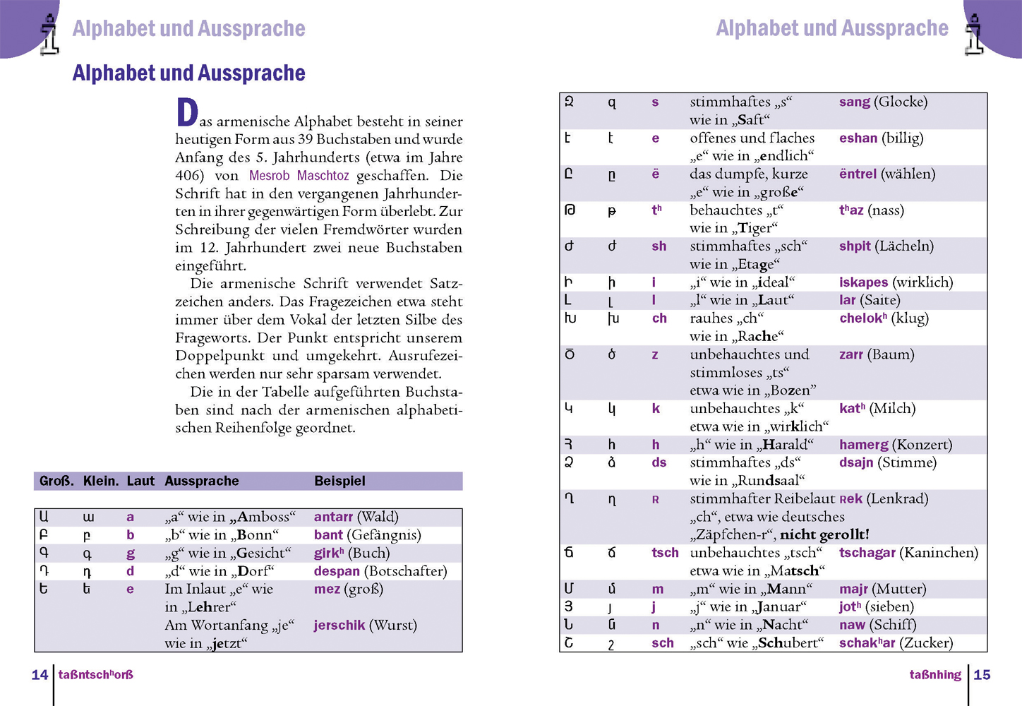 Dieser Sprachführer richtet sich vor allem an Armenien-Reisende und konzentriert sich deshalb auf das Ostarmenische. Das Buch vermittelt die wichtigsten grammatikalischen Grundkenntnisse und greift typische Sätze aus dem armenischen Alltagsleben auf. Sie sollen den Lesern helfen, zu verstehen und sich verständlich zu machen. Nicht die vollkommene Sprachbeherrschung ist hier angestrebt, sondern eine praktische Hilfe für jeden, der nach Armenien reist und sich für die armenische Kultur interessiert.