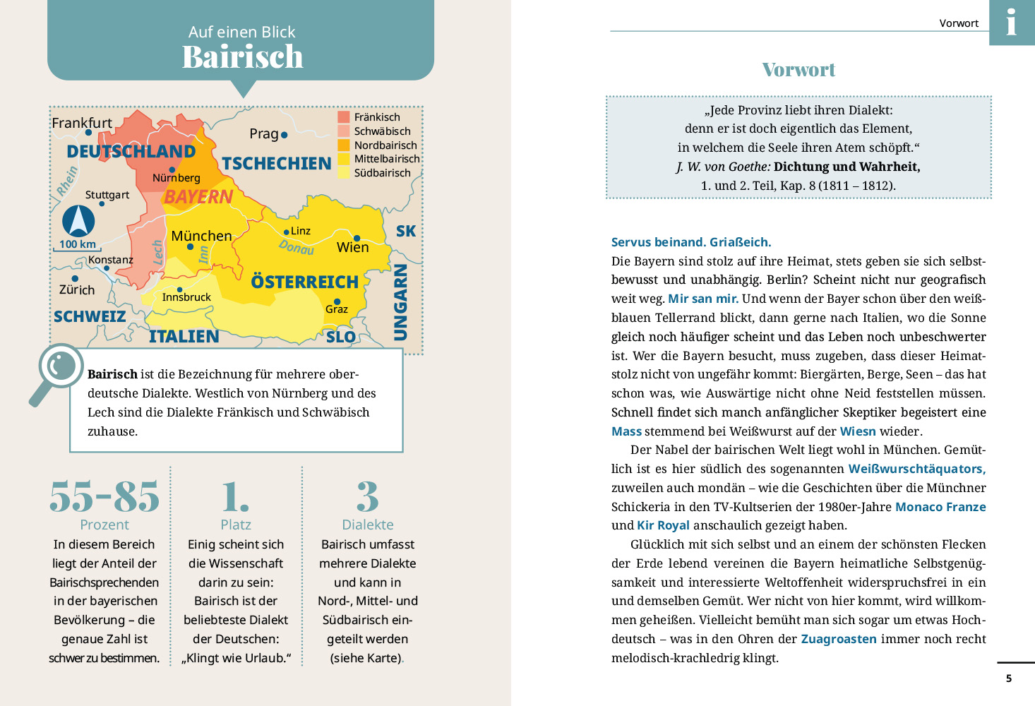 Bairisch spricht man nicht nur, man denkt, fühlt, lebt und liebt bayerisch, es ist Sprache gewordenes Lebensgefühl. Wer ein paar Ausdrücke neben den bekannten „ja mei“ oder „Mia san mia“ lernt, der taucht tief in die besondere Kultur des Freistaates ein.