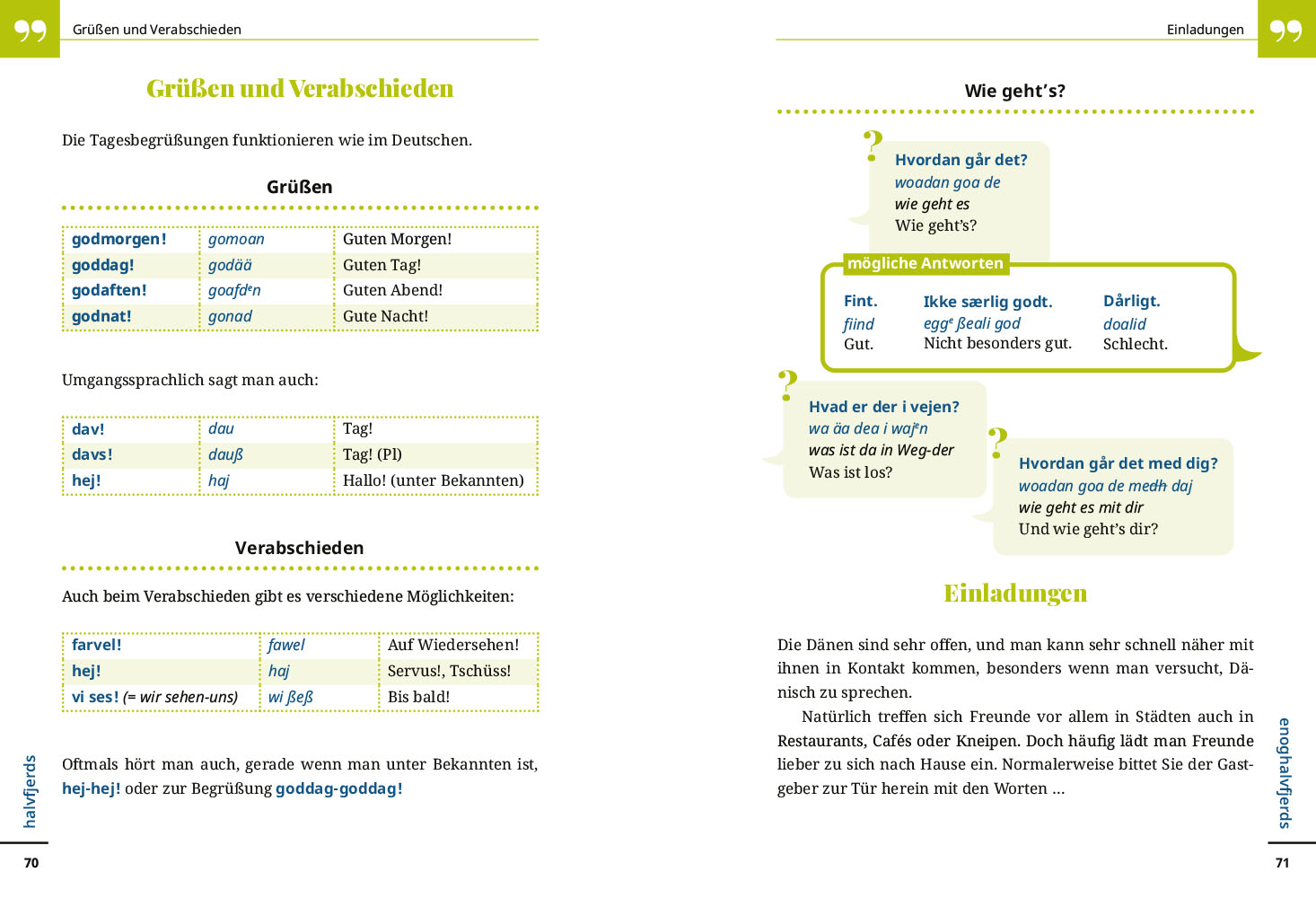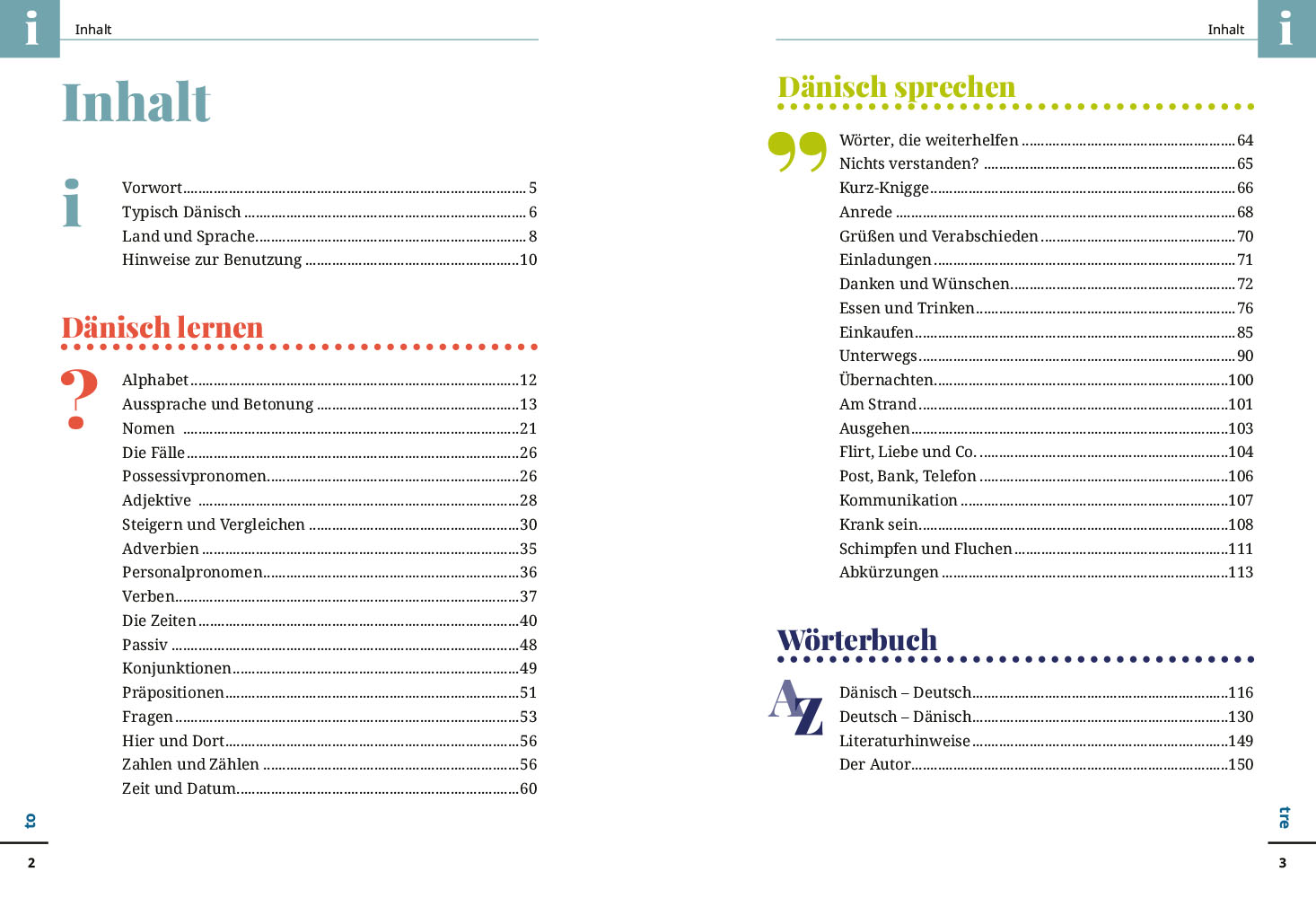In diesem Sprachführer werden die wichtigsten Grammatikregeln erklärt, ohne zu sehr ins Detail zu gehen. Vielmehr sollen die Reisenden möglichst schnell dazu im Stande sein, eigenständig Sätze zu bilden und sich auf Dänisch zu unterhalten. Ein Kurz-Knigge erläutert die wichtigsten Verhaltensregeln und Umgangsformen, die sich zwar nicht sehr von den deutschen unterscheiden, aber doch ein paar Feinheiten aufweisen. Viel Spaß beim Lernen und "hav en god tur"!