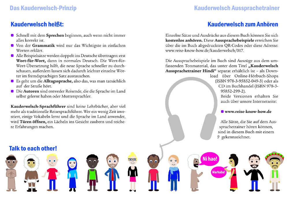 - Kauderwelsch-Bücher sind viel mehr als übliche Reisesprachführer. Ziel ist es, schon nach kurzer Zeit tatsächlich sprechen zu können, wenn auch nicht immer druckreif. Wer sich ein wenig Zeit zur Vorbereitung nimmt, kann mit Kauderwelsch auf Reisen in einen intensiveren Kontakt mit den Einheimischen treten und Erfahrungen machen, die sprachlosen Reisenden verborgen bleiben.