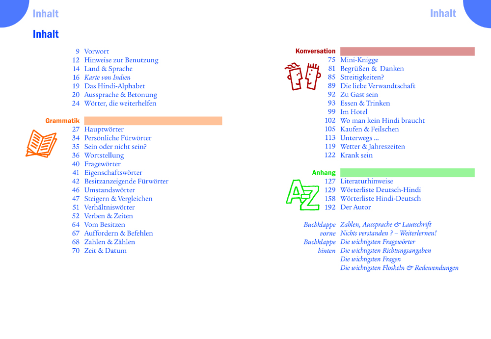 - Die Grammatik wird kurz und verständlich erklärt, soweit es für einen einfachen Sprachgebrauch nötig ist. Das Wörterbuch am Ende hält einen Grundwortschatz und wichtige Begriffe für Reisende bereit. Wissenswertes über Land und Leute und Besonderheiten der Kommunikation werden nebenbei vermittelt.