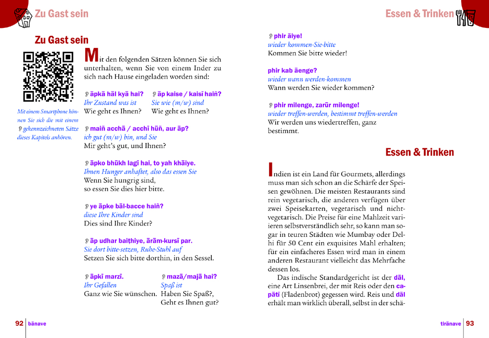 Hindi, die mit Abstand wichtigste Sprache im nördlichen Indien, ist nicht so schwer zu erlernen, wie es durch seine schwungvoll-fremden Buchstaben erscheinen mag. Wer durch Indien reist und einige Worte Hindi spricht, wird schnell als „dost“ (Freund) akzeptiert und ist bei Preisverhandlungen klar im Vorteil. Und wenn einem mal das passende Hindi-Wort nicht einfällt, ist es nicht tragisch, wenn man mal eine englische Vokabel einbaut – das tun die Inder nämlich ebenso.