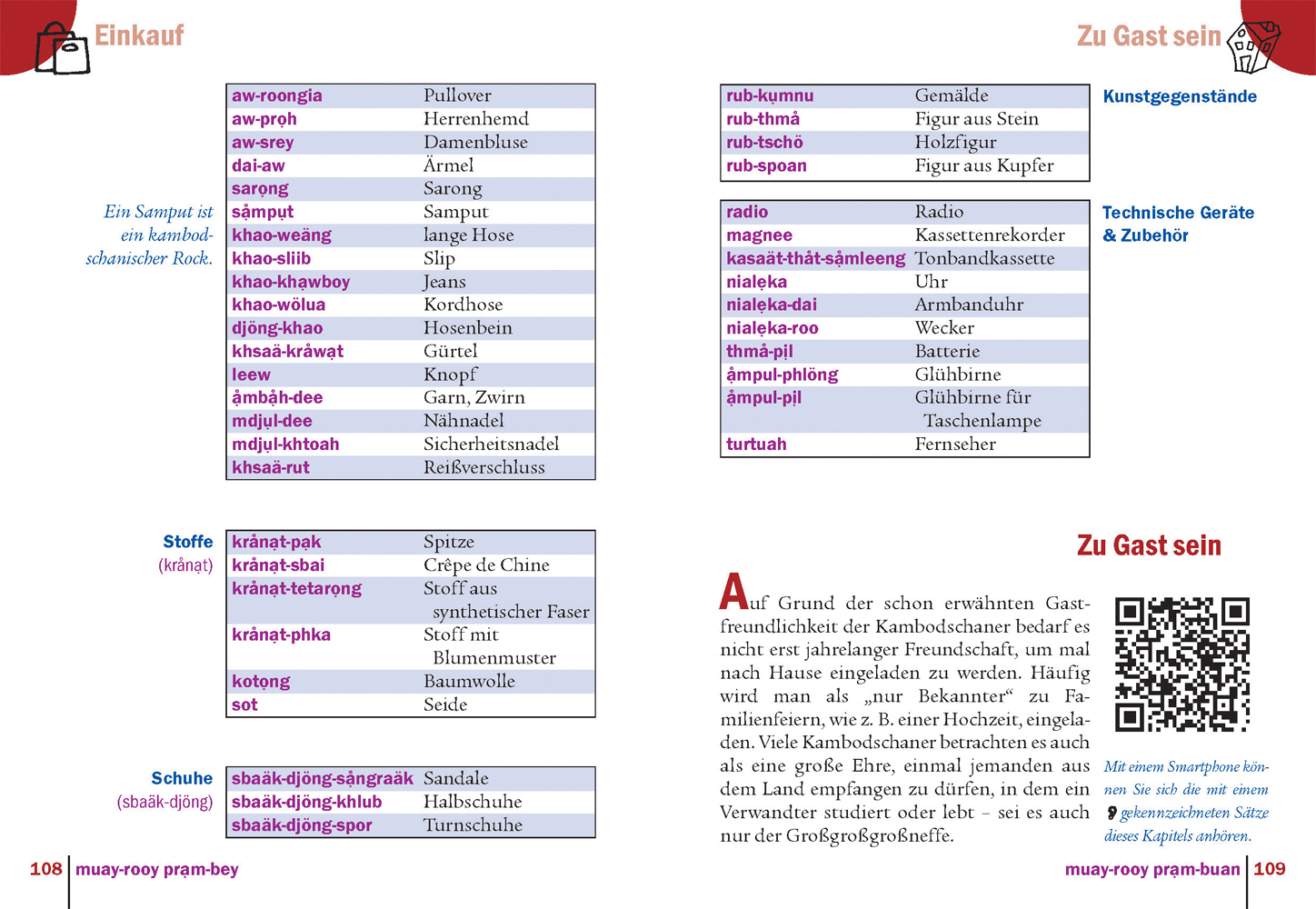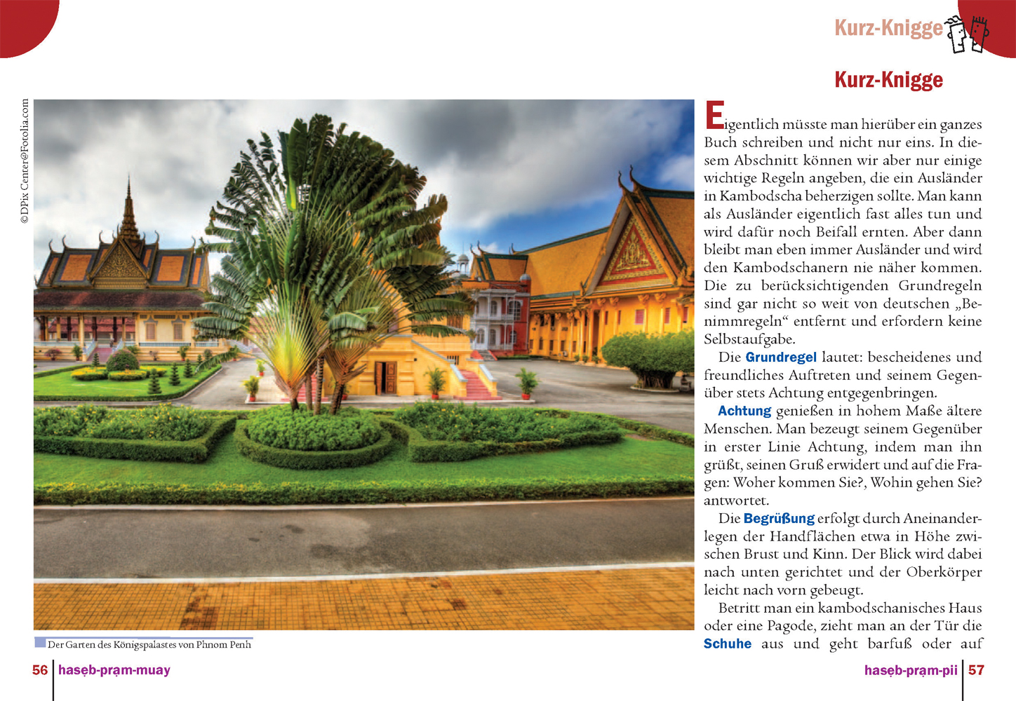 Dieser Sprachführer rüstet Sie mit den Khmer-Kenntnissen aus, die Sie für eine Reise nach Kambodscha wirklich brauchen. Die Wörter und Redewendungen entstammen der gesprochenen Umgangssprache. Situationen, die auf Französisch oder Englisch bewältigt werden können (Flughafen, Zoll, Bank, Post) werden nicht behandelt. Das Buch ist so gestaltet, dass es Ihnen in kurzer Zeit gelingen wird, sich auf Khmer zu verständigen, sich in Kambodscha besser zurechtzufinden und dort mit den Menschen in Kontakt zu kommen.