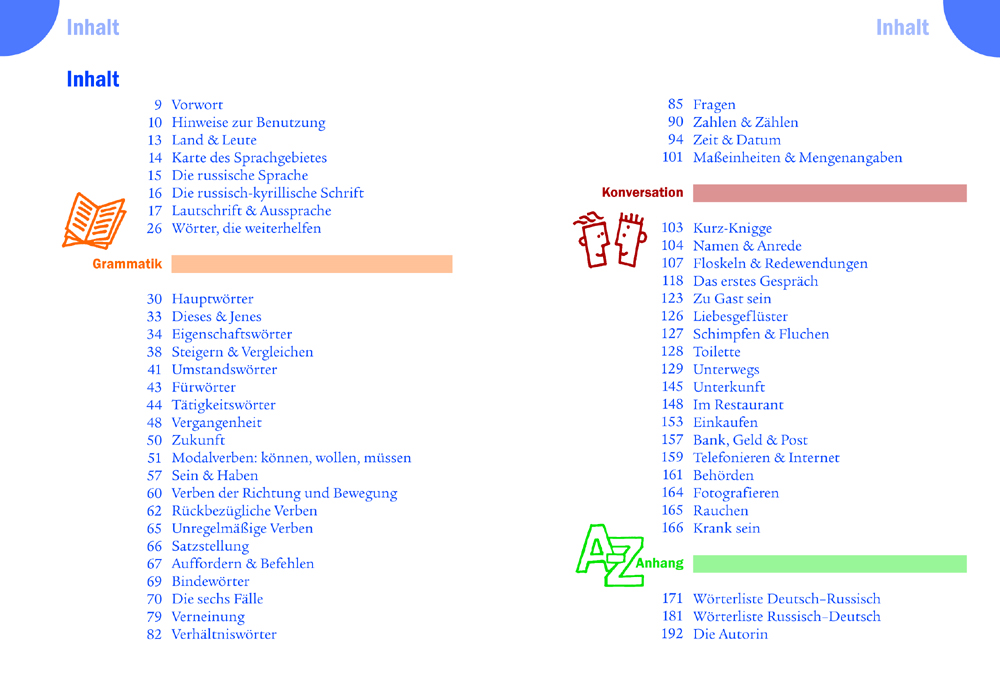 Schon wenige Sätze in russischer Sprache genügen, um die Herzen vieler Russen im Sturm zu erobern. Sie sind nicht nur sehr gastfreundlich, sondern auch sehr stolz auf ihre Heimat und ihre Sprache und empfinden deshalb die Bemühungen eines Reisenden, vor allem aus dem westlichen Ausland, als besondere Wertschätzung. Neben ergänzenden Tipps zu Alltagssituationen ist das Buch mit einer Grammatikübersicht und einer unkomplizierten Lautschrift ausgestattet, welche die Leser in die Lage versetzt, eine Vielzahl von Sätzen selbst zusammenzustellen.