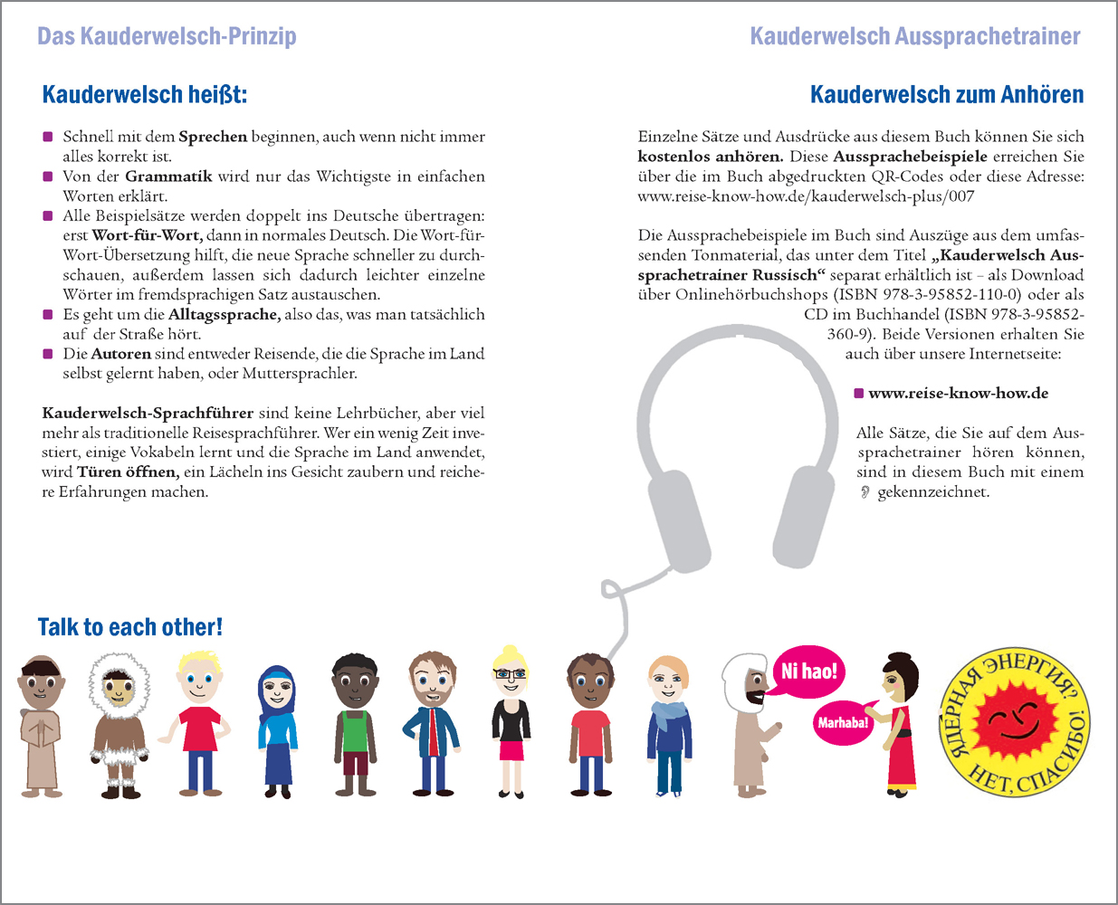 - Wer sich ein wenig Zeit zur Vorbereitung nimmt, kann mit Kauderwelsch auf Reisen in einen intensiveren Kontakt mit den Einheimischen treten und Erfahrungen machen, die sprachlosen Reisenden verborgen bleiben.
