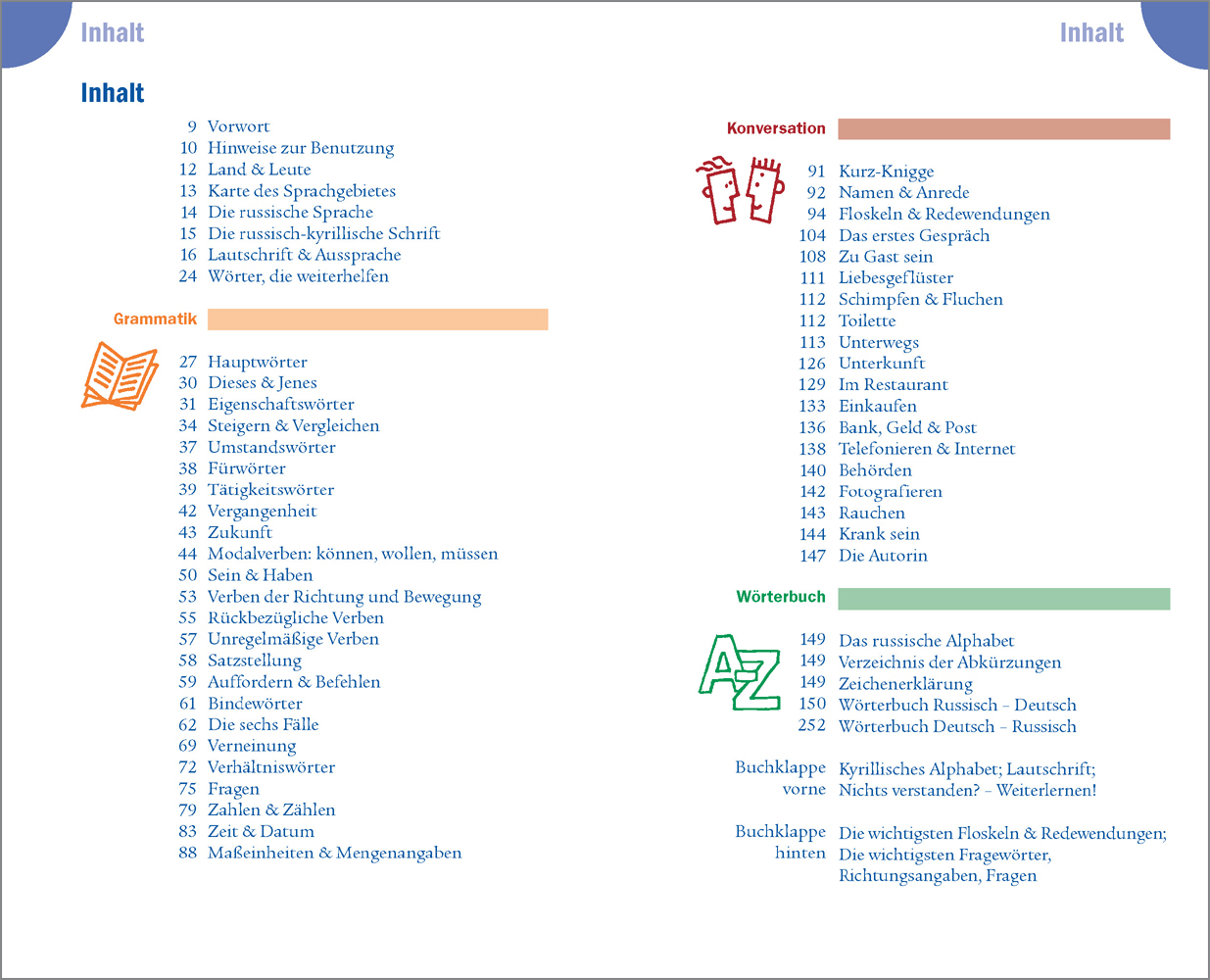- Die Grammatik wird kurz und verständlich erklärt, soweit es für einen einfachen Sprachgebrauch nötig ist. Wissenswertes über Land und Leute und Besonderheiten der Kommunikation werden nebenbei vermittelt.
