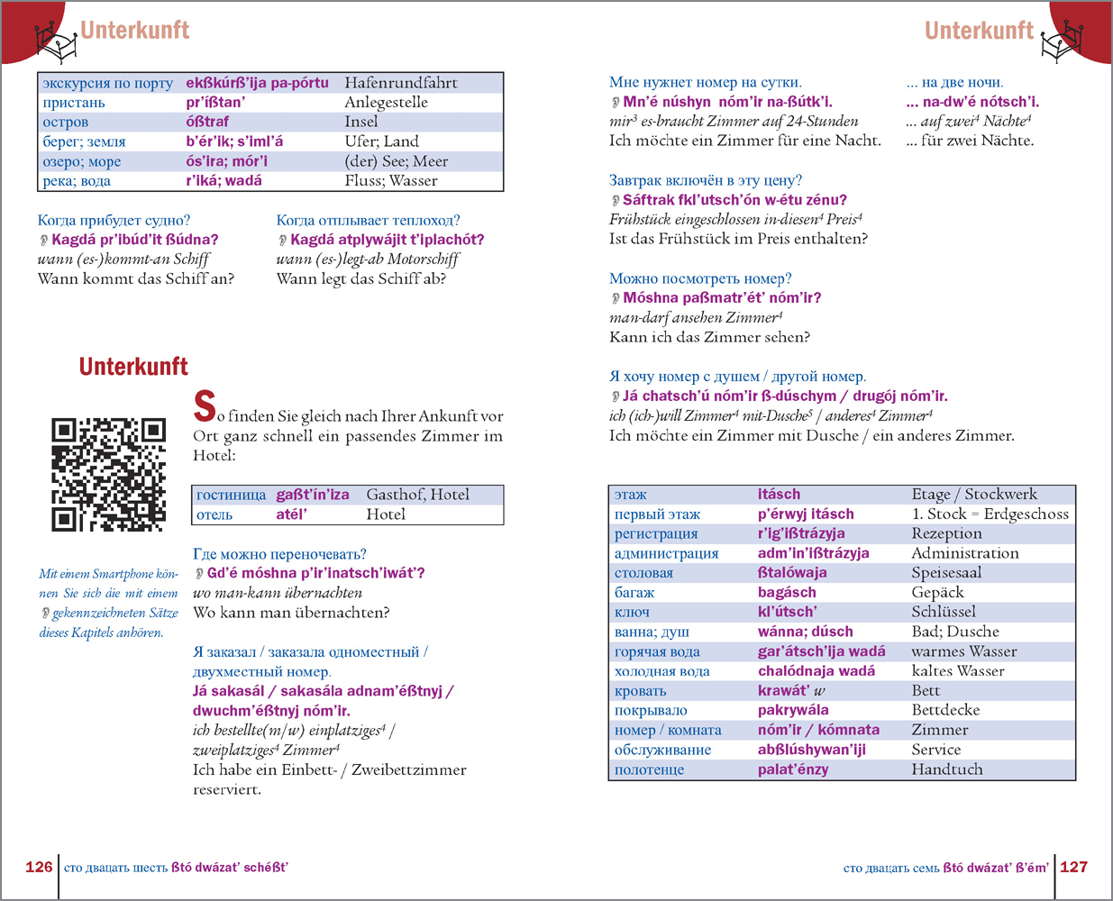 Neuer Titel in der eingeführten Kauderwelsch-Sprachführerfamilie in der Variante Kauderwelsch Plus (...). Reihenkonform gliedert er sich in 3 Teile: Grammatik, Konversation und Wörterbuch. In einem Einleitungskapitel wird in die kyrillische Schrift und die Aussprache des Russischen eingeführt. Der Konversationsteil bringt neben vielen landeskundlichen Infos nützliche Sätze und Vokabeln für touristische Alltagssituationen. So gibt es für alle Wendungen immer den russischen Satz, Lautschrift, deutsche Wort-für-Wort-Übersetzung und normale Übersetzung. Es folgt ein auf die Bedürfnisse Reisender zugeschnittener Wörterbuchteil (ca. 10.000 Einträge in beiden Sprachrichtungen, die russischen Wörter sind mit Lautschrift versehen), der mehr als die Hälfte des Buches ausmacht. Über QR-Codes können ausgewählte Sätze angehört werden.