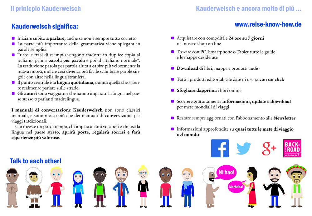 - Le autrici e gli autori della serie Kauderwelsch sono „giramondi“ che hanno appreso la lingua nel paese. Perciò sanno precisamente come parla la gente nella vita quotidiana. Il suo modo d’esprimersi è per lo piğ molto piğ semplice e piğ diretto p. es. della lingua della letteratura.