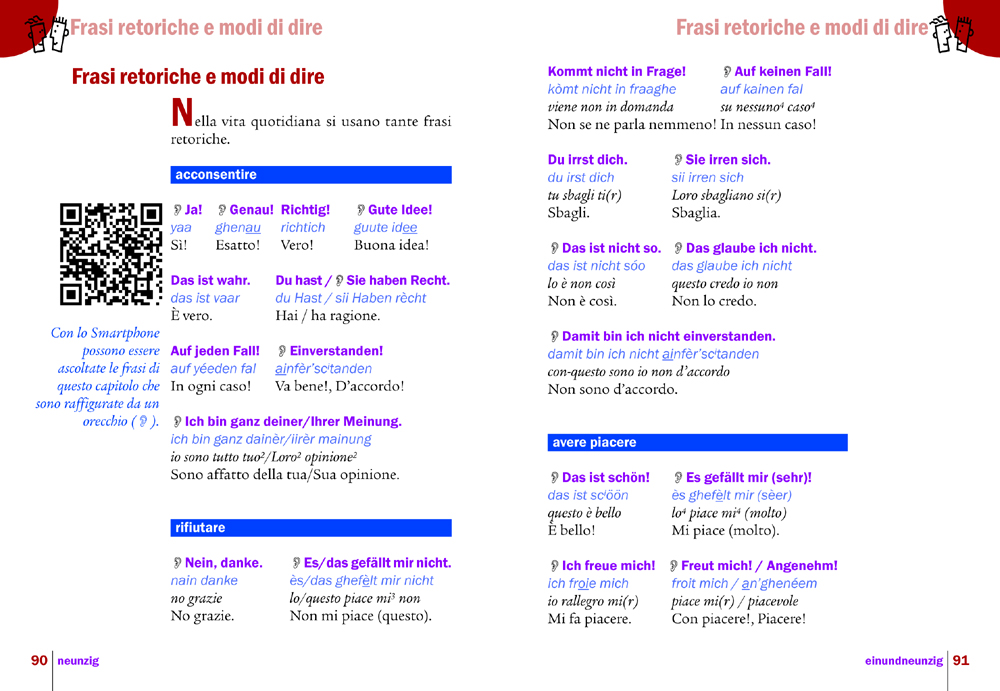 - Particolarmente importante sono il linguaggio del corpo, gesti, segni e regole di comportamento nel paese turistico. Senza questi informazioni anche i conoscitori della lingua non vengono in contatto con la gente. Per questo in tutti i volumi della serie si pone attenzione a questo tipo di comunicazione.