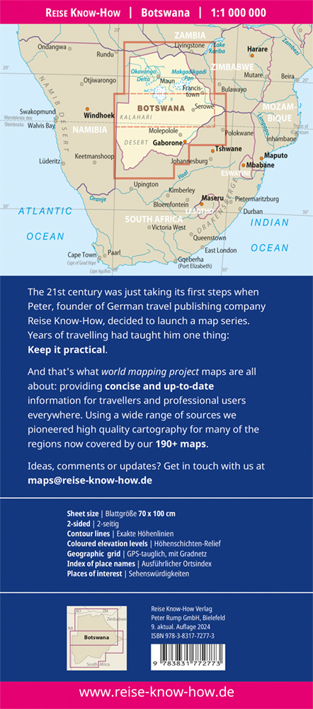 Hochreißfeste und 100% wasserfeste Landkarte Botswana aus der Serie world mapping project.