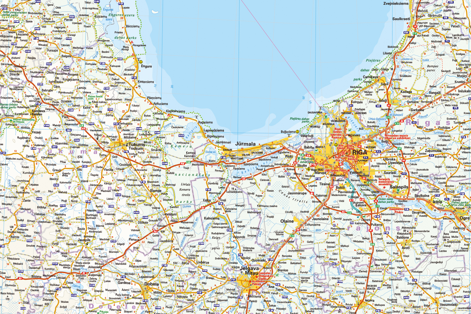 This robust outdoor map, made of Polyart®, can withstand extreme weather and intensive use without the need for a protective cover. Thanks to its matte surface, it is easy to read even in strong sunlight and can be written on with a pencil and highlighter with ease. The map has a removable cardboard cover and is foldable and compact – ideal for quick access in your bicycle bag, tank bag or glove compartment. The cartographic representation is precise, reliable and easy to read. The road map of Latvia is therefore precisely tailored to the needs of travelers.