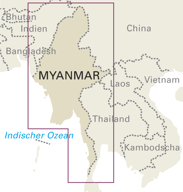 Hochreißfeste und 100% wasserfeste Landkarte „Myanmar“ aus der Serie world mapping project.