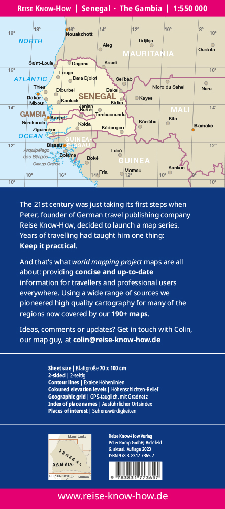 Reise Know-How Landkarten zeichnen sich durch besonders stabiles Kunststoffpapier aus, das beschreibbar ist wie Papier, sogar mit Bleistift. Der Pappumschlag ist abnehmbar, so dass sich die Karte bequem in jede Tasche stecken lässt. Eine Schutzhülle ist nicht erforderlich. Die kartografische Darstellung konzentriert sich auf die wichtigsten Informationen für Reisende und ist besonders gut lesbar. Statt einer Schummerung werden farbige Höhenschichten verwendet.
