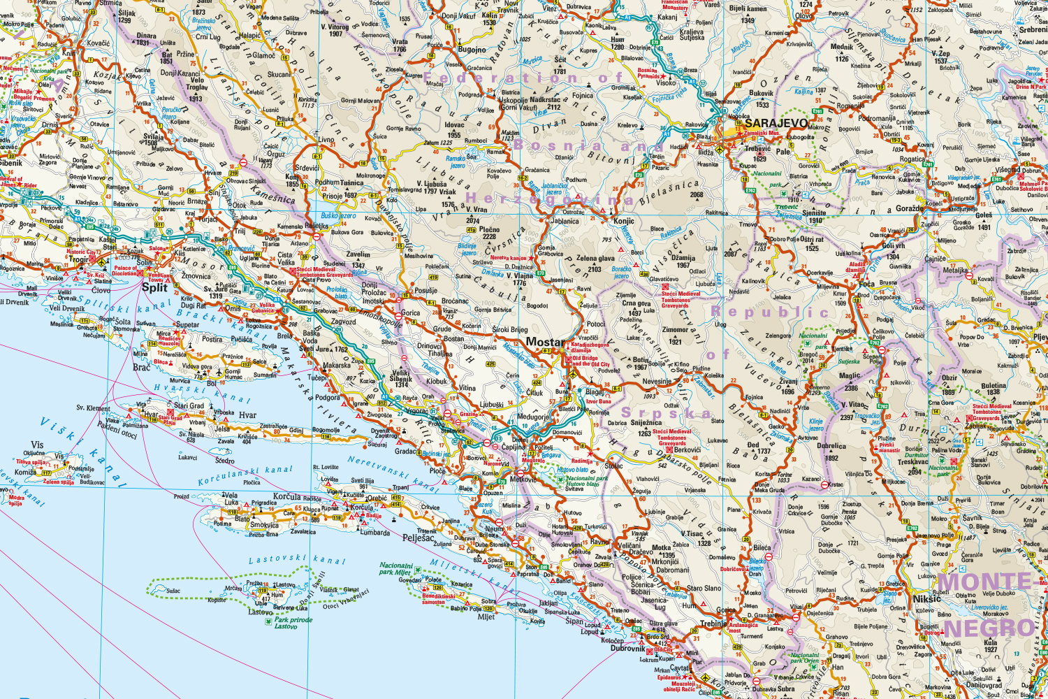 - Classified road network with distance information – the ideal map for car & motorcycle routes