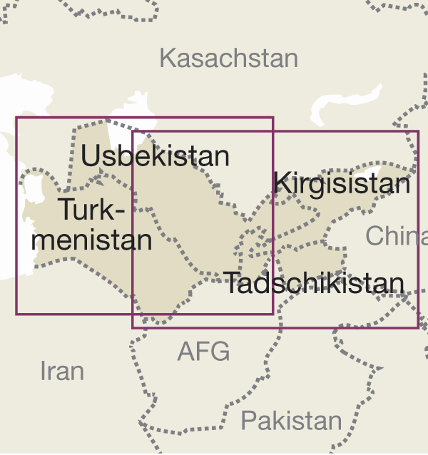 Hochreißfeste und 100% wasserfeste Landkarte "Zentralasien" aus der Serie world mapping project. Diese Karte beinhaltet die Länder Usbekistan, Turkmenistan, Kirgisistan und Tadschikistan.