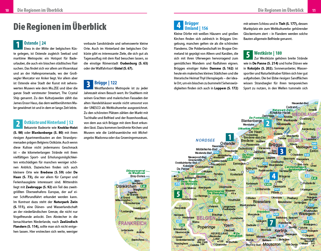 - Übersichtsseiten mit Beschreibungen aller Regionen: Ostende, Ostküste und Hinterland, Brügge und Brügger Umland, Westküste, Westhoek und Leiestreek