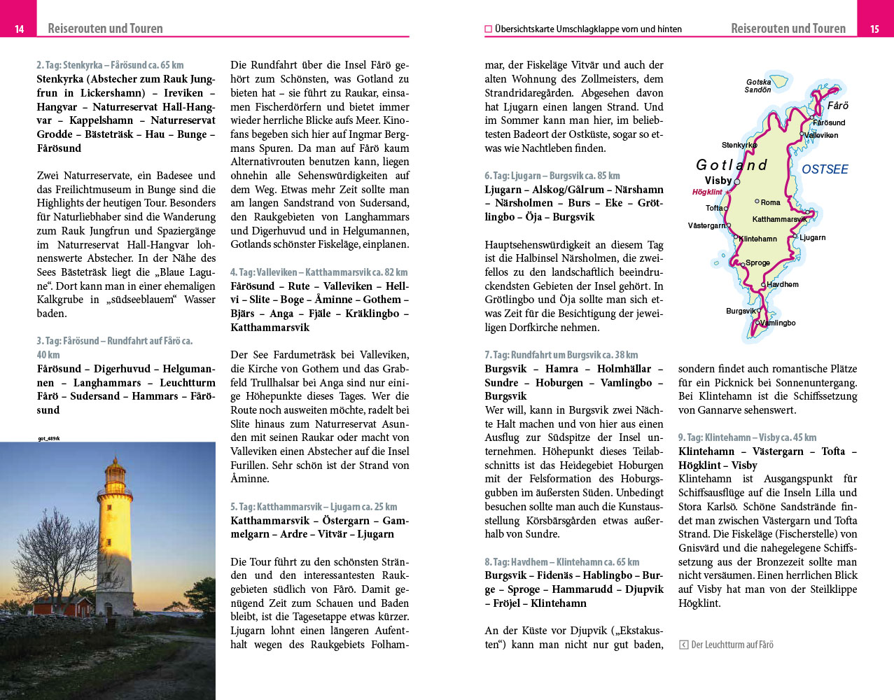 - Übersichtsseiten mit Beschreibungen aller Regionen: Visby, Nord- und Südgotland und natürlich auch Zentralgotland