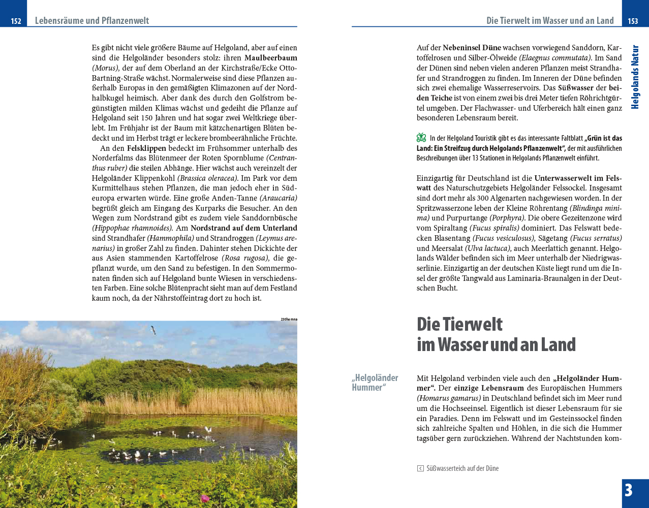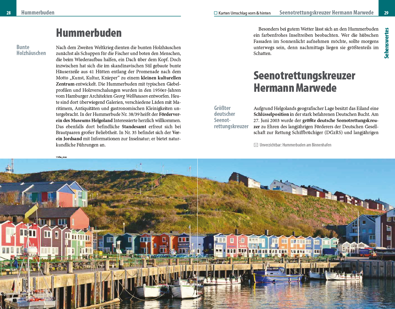 „Was die Insel zu etwas ganz Besonderem macht, ist ihre Lage inmitten der Nordsee, die man besonders auf dem Oberland wahrnimmt. Wer sich im Kreis dreht, sieht an manchen Stellen das Meer in allen vier Himmelsrichtungen – wo geht das sonst schon?“, stellen die Autoren Nicole Funk und Michael Narten fest. Ihr Reiseführer lädt dazu ein, Helgoland in allen Facetten zu erkunden, ob mit dem Rad, beim Inselspaziergang oder mit kulinarischem Blick.