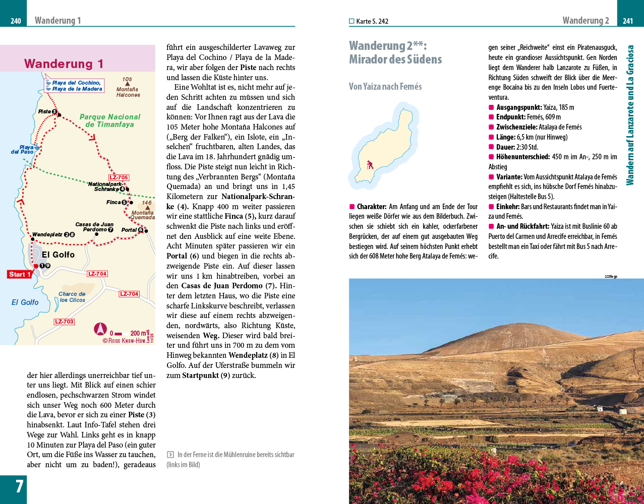 - Informationen zu allen Sehenswürdigkeiten und weniger bekannten Orten, wie zum Beispiel der botanische Garten „Jardín del Cactus“ oder die „Feuerberge“