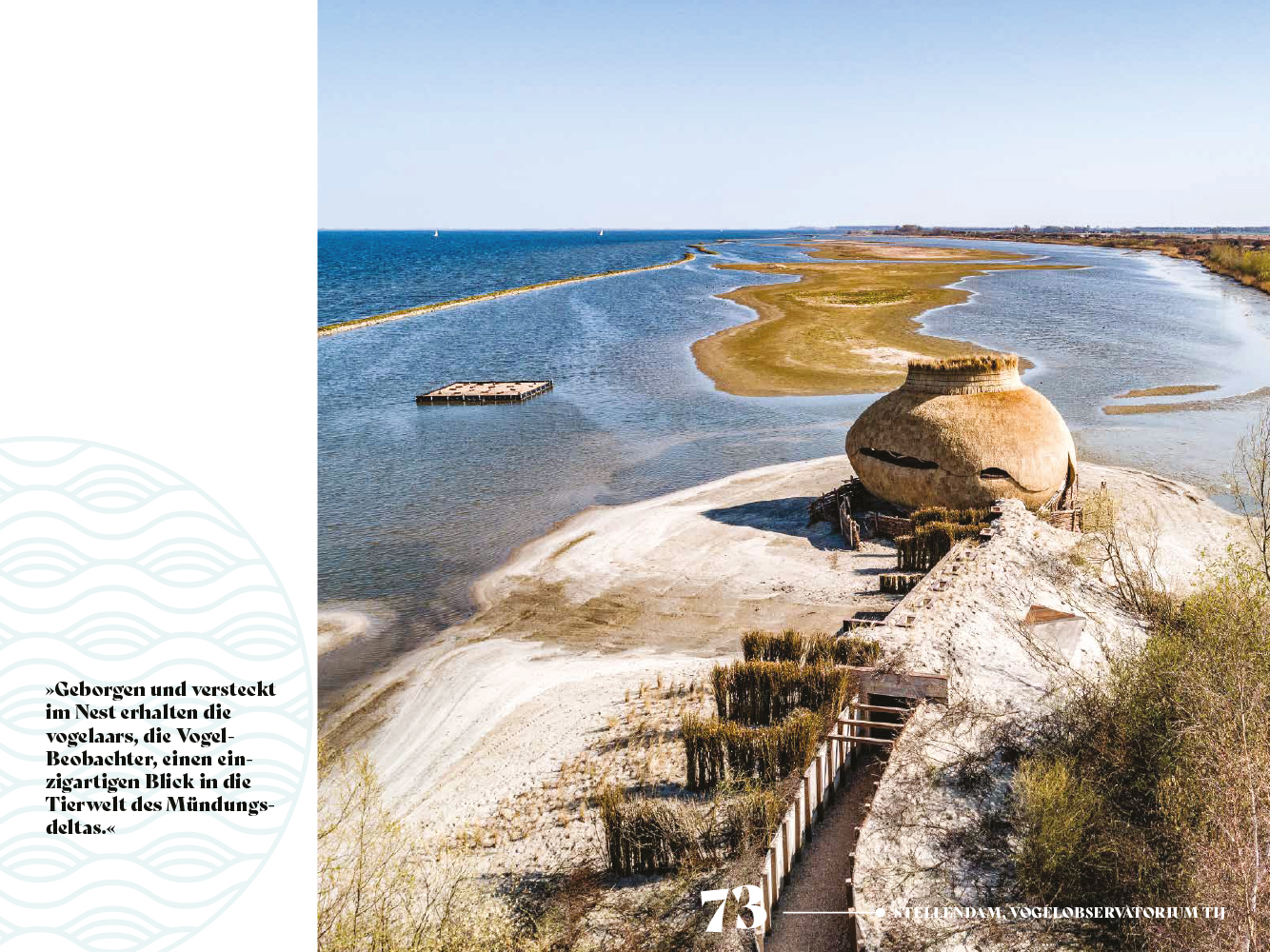 Für ihre Soul Places streift die Autorin quer durch die Niederlande und stellt jeweils auf einer Doppelseite und reich bebildert zum Beispiel das Gebiet Bollenstreek vor, wo die Blumenzwiebeln gezogen werden, die Holland berühmt gemacht haben.