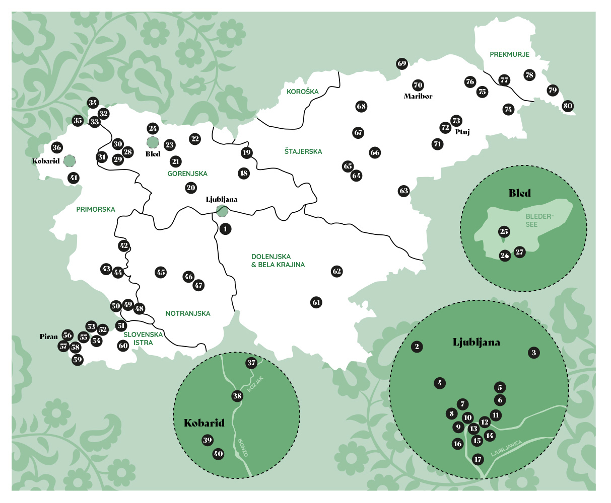 Das Moor um den grün schimmernden Mini-See Zeleno im Nordwesten, die spätmittelalterliche Altstadt von Škofja Loka oder eine Nacht in einem Chalet mit Aussicht auf die Gipfel der Julischen Alpen: Jeder einzelne dieser Orte in Slowenien ist eine Reise wert und hat das Zeug, zum neuen Lieblings- und Sehnsuchtsort zu werden. Sie alle sind Soul Places, Orte, an denen die Seele Sloweniens greifbar wird.