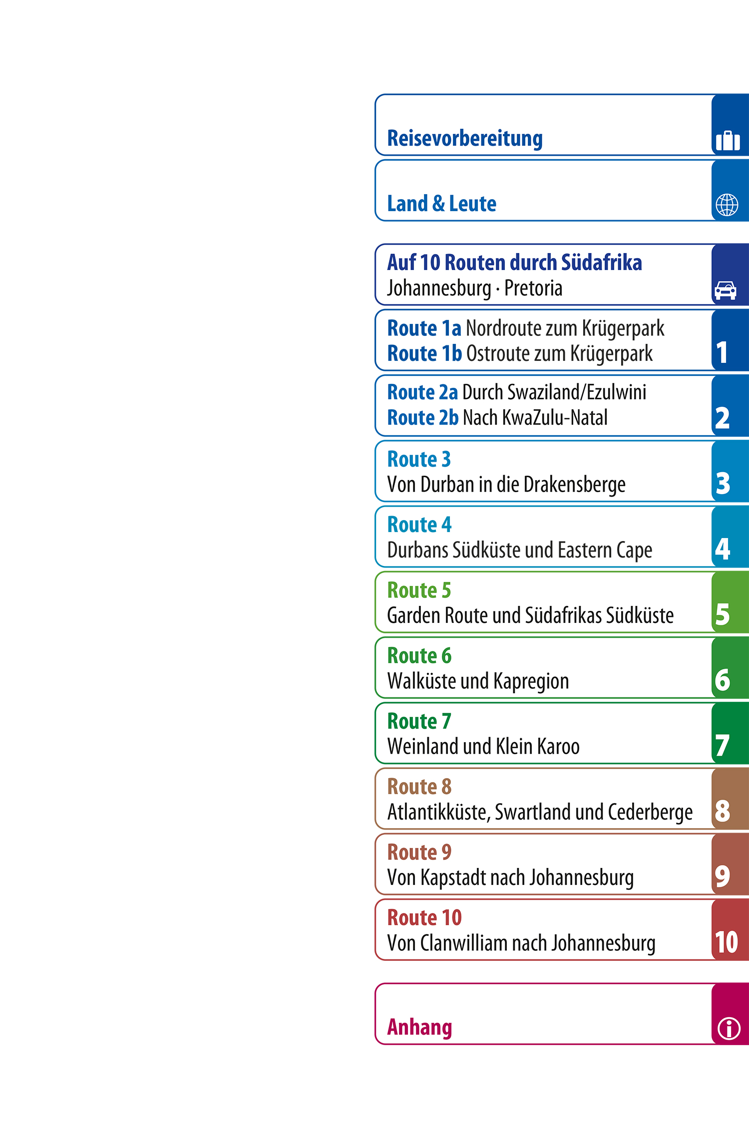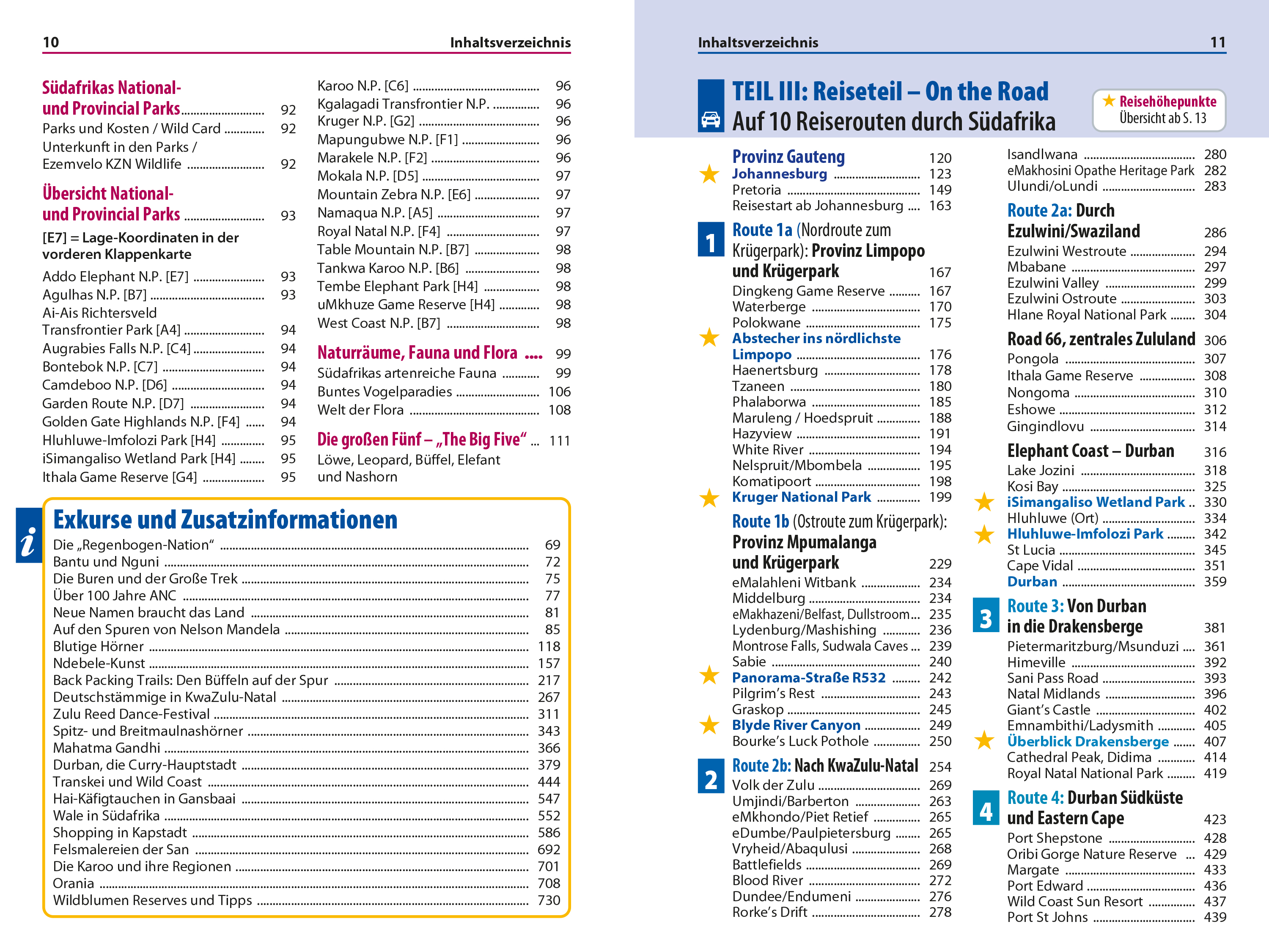 Das Buch bietet darüber hinaus fundierte Hintergrundinformationen zu Land und Leuten, anschauliche Porträts von Städten, Dörfern und Sehenswürdigkeiten sowie einen Blick auf kulturelle, künstlerische und architektonische Besonderheiten. Vorgestellt werden außerdem landschaftliche Highlights, einzigartige Tierbeobachtungen, unbekannte Winkel abseits der typischen Routen, inspirierende Wandervorschläge und Tipps für sportliche Aktivitäten – ideal für alle, die Südafrika intensiver erleben möchten.