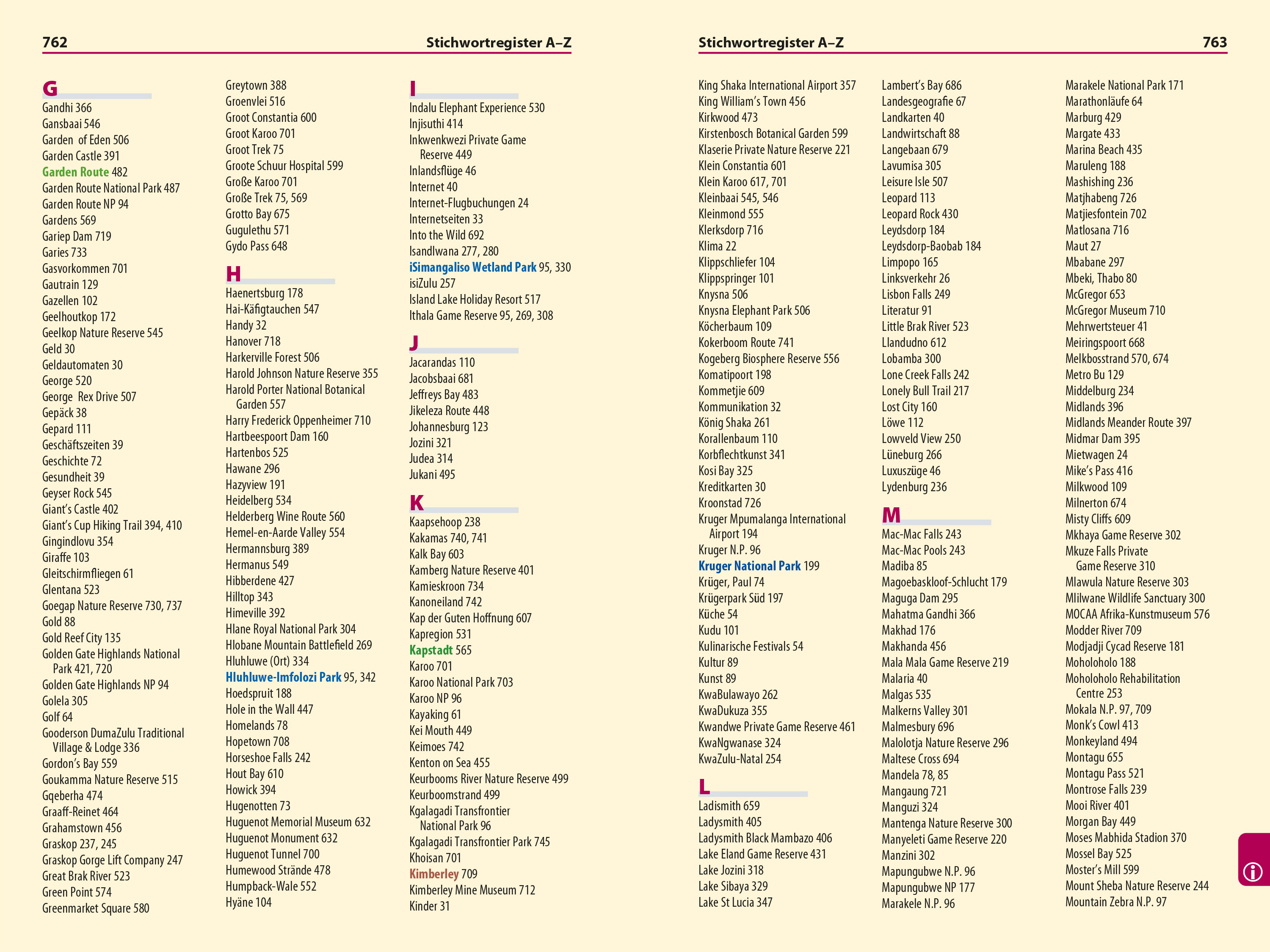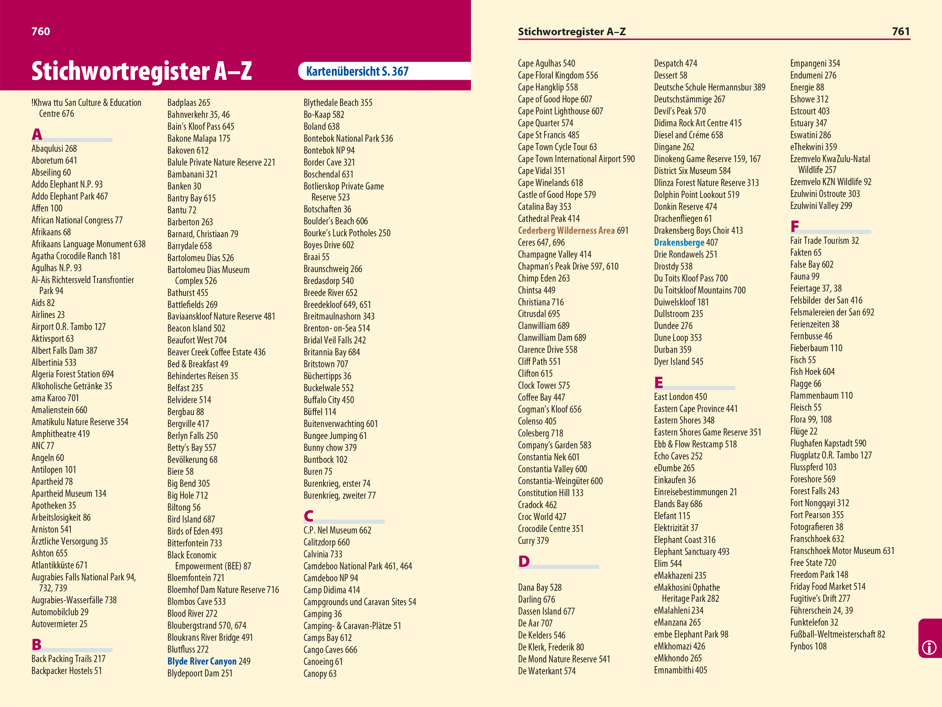 - Glossar, Stichwortregister A–Z , Griffmarken, Seiten- und Kartenverweis