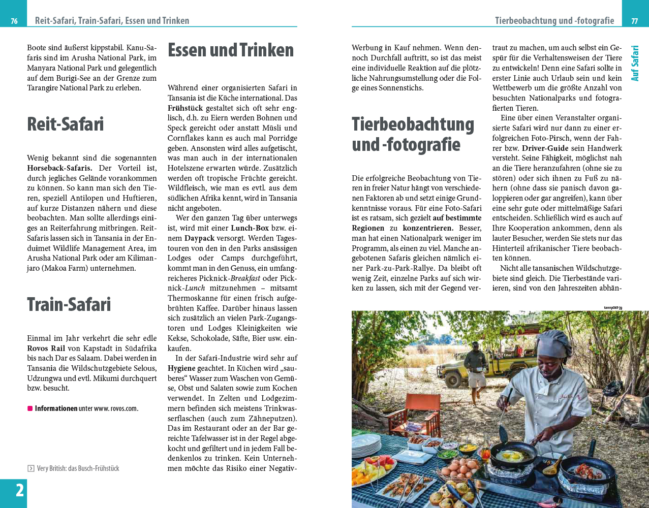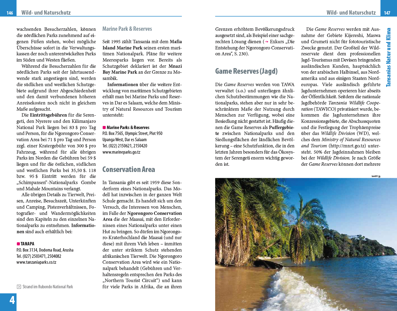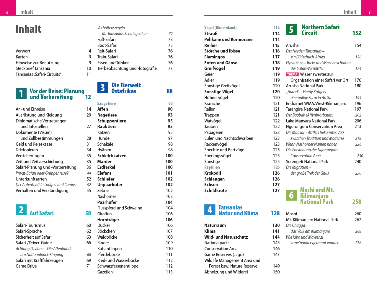 - Sorgfältige Beschreibung von 17 Nationalparks: Northern Circuit (mit Arusha), Kilimanjaro National Park (mit Moshi), Eastern, Southern und Western Circuit