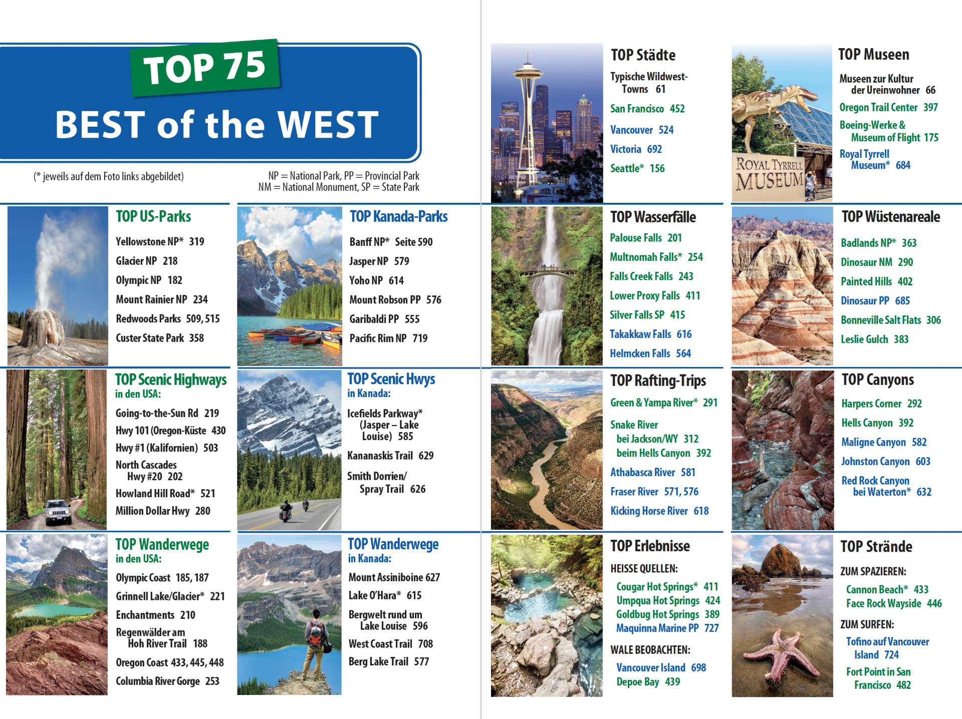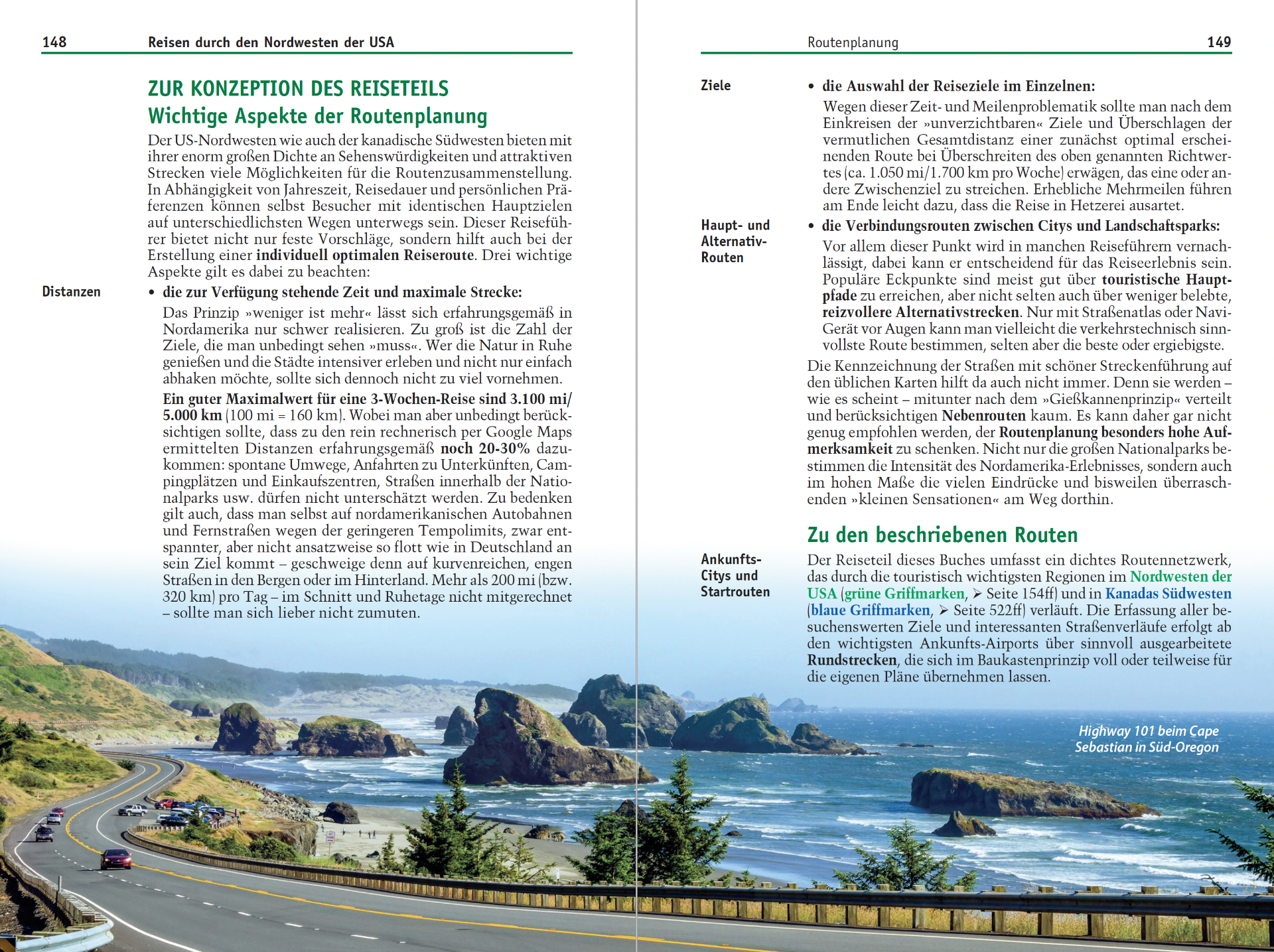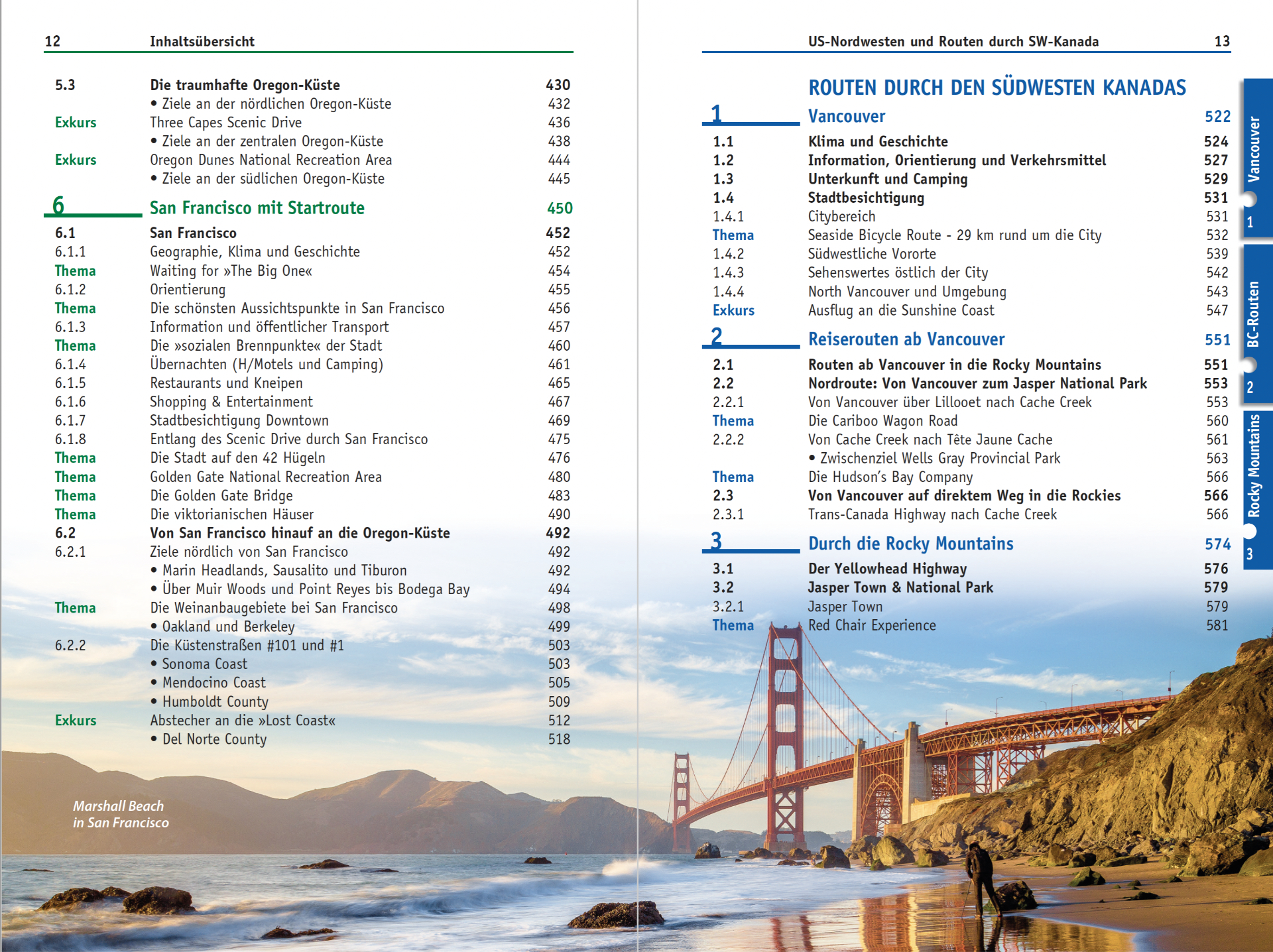 Die ausführlich beschriebenen Strecken durch British Columbia/Alberta und die City-Kapitel zu Vancouver, Victoria und Calgary ermöglichen nicht nur grenzübergreifende Routen, sondern auch eine eigenständige 2- bis 3-wöchige Kanada-Rundreise.