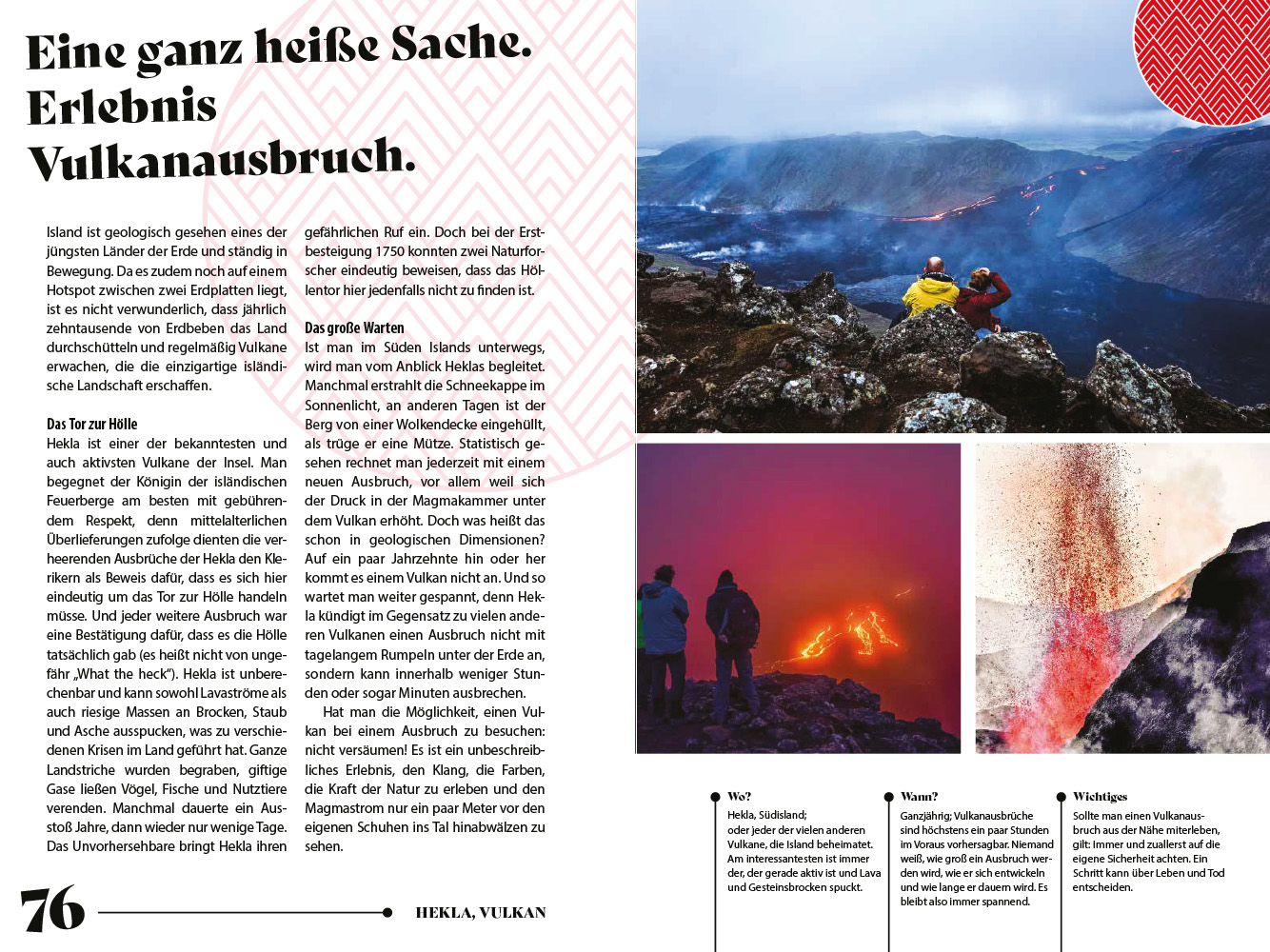 Bunt tanzende Nordlichter, zischende Geysire, die meterhohe Wassersäulen formen, feuerspuckende Vulkane und eiskalte Gletscher: Island ist das Land magischer Naturwunder, der Mythen und Sagen und außergewöhnlicher, berührender Orte, an denen die Seele des Landes zutage tritt.