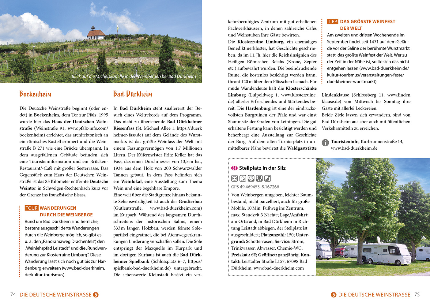 Dazu: kostenlose Web-App für Smartphone, Tablet und PC mit Lage der Stellplätze und Navigation dorthin sowie seitenbezogenen Updates nach Redaktionsschluss